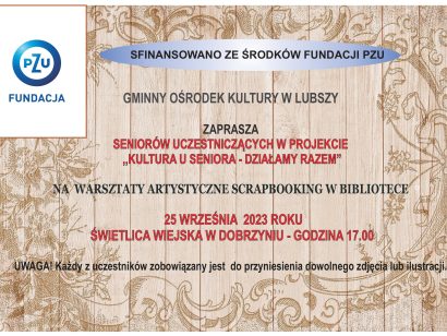 Czerwiec i lipiec dla uczestników projektu ,,Kultura u Seniora – działamy razem” to miesiące obfitujące w wiele różnorodnych i interesujących spotkań i warsztatów. Jednym z nich były warsztaty artystyczne zrealizowane w świetlicy w Dobrzyniu 18 lipca. Tematem przewodnim zajęć było wykonanie dekoracyjnych koszyków przy użyciu drewnianych elementów przeplatanych sznurkami. Przygotowane przez seniorów piękne kosze zostały […]
