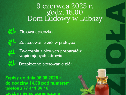 Dzika Apteka – pod taką intrygującą nazwą 9 czerwca br. w Gminnym Ośrodku Kultury w Lubszy odbyły się warsztaty tematyczne. GOK zorganizował je wspólnie z Opolskim Ośrodkiem Doradztwa Rolniczego w Łosiowie. W trakcie spotkania, prowadzonego przez p. Monikę Kolanowską (Centrum Medycyny Naturalnej) zebrani dowiedzieli się m.in. wielu ciekawych rzeczy o bezpiecznym zastosowaniu ziół w praktyce, […]